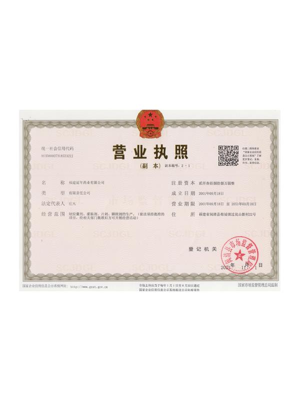 福建延年藥業(yè)有限公司位于福州市閩清縣城關(guān),工廠坐落在風(fēng)景秀美的梅城森林公園山腳下,公司前身是中國人民解放軍第9747工廠,創(chuàng)辦于1970年9月,隸屬南京軍區(qū)總后勤部,企業(yè)的地方名稱為福建閩清制藥廠。1998年6月為貫徹中央關(guān)于軍隊(duì)不再從事經(jīng)商活動的決議,企業(yè)軍轉(zhuǎn)地改制移交地方,2001年9月企業(yè)改制,更名為福建延年藥業(yè)有限公司。